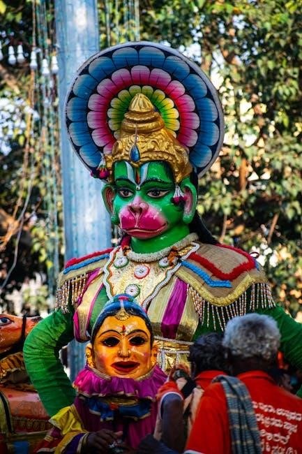The verses detail Hanuman’s heroic deeds from the Ramayana, reinforcing his image as the ultimate devotee and a symbol of courage. Studying the text, even in Hindi PDF format, fosters a stronger understanding of Hanuman’s character and his profound connection to the divine. It’s a pathway to embodying his noble attributes.