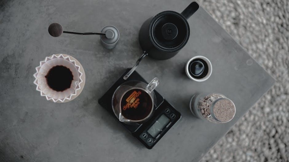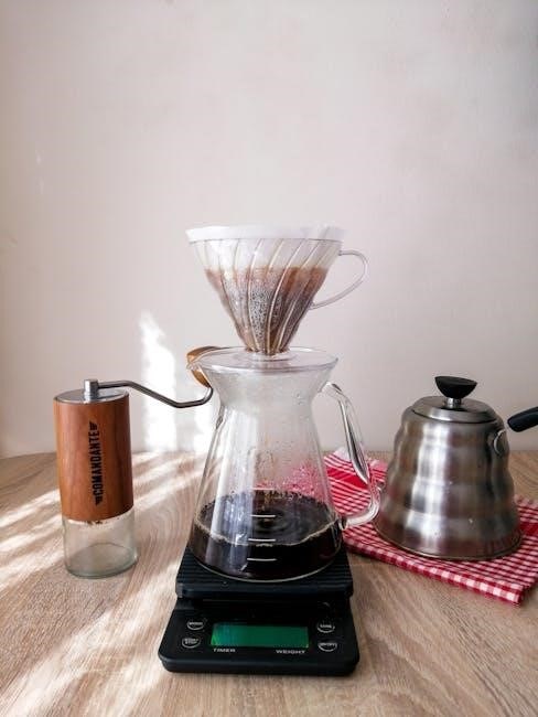 Essential tools include a pour over device‚ filters (paper‚ metal‚ or cloth)‚ a gooseneck kettle for precision‚ and a quality burr grinder for consistent results.
