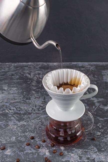 A gooseneck kettle is paramount for manual pour over‚ enabling precise water flow control. Unlike standard kettles‚ the elongated‚ narrow spout allows for a slow‚ steady stream‚ crucial for even saturation of the coffee grounds. This controlled pour minimizes channeling – where water finds the path of least resistance – leading to uneven extraction.